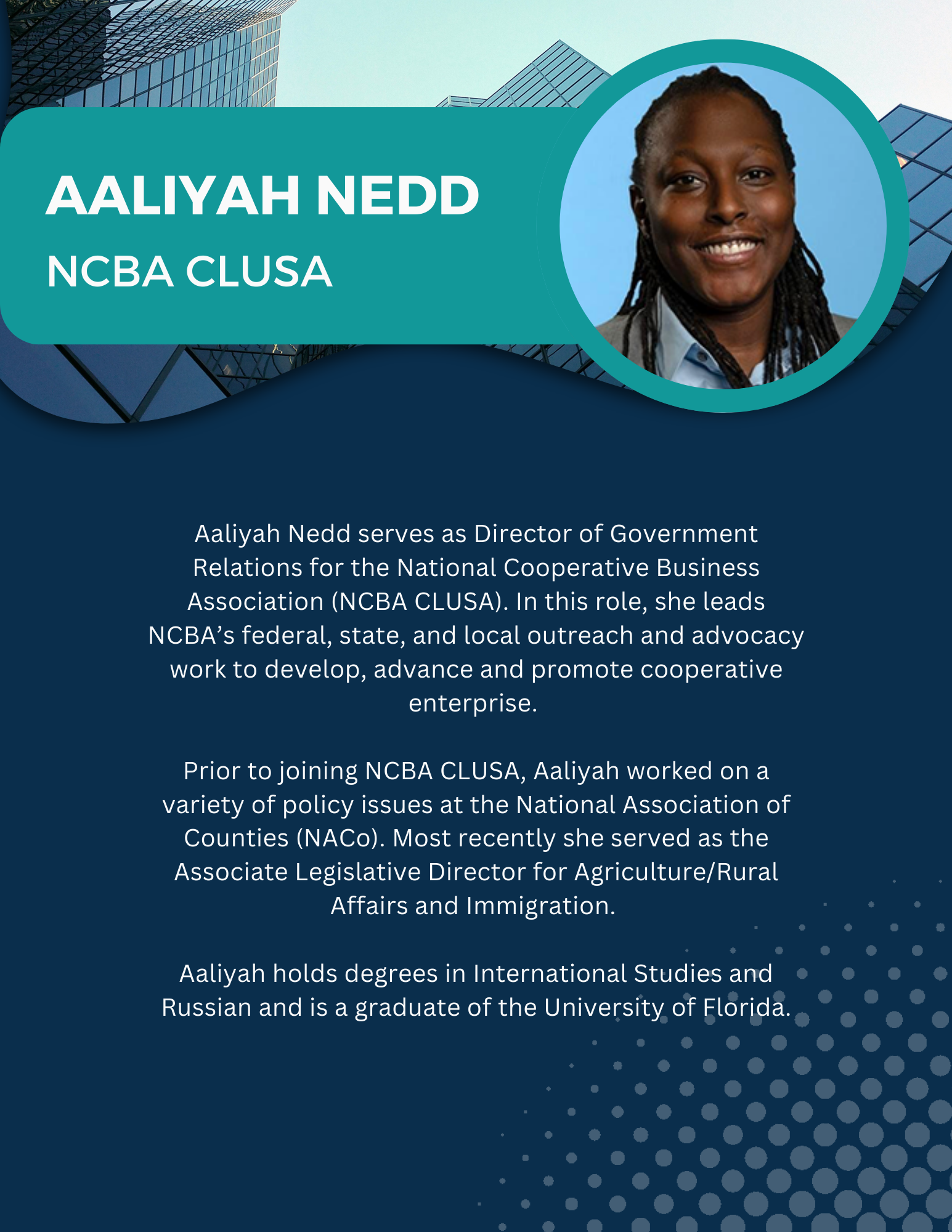 - Aaliyah Nedd, Director of Government Relations at NCBA CLUSA